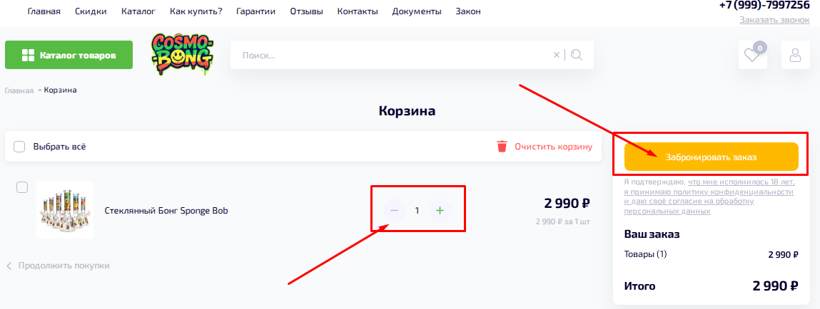 Проверьте выбранные вами позиции и количество нужных вам товаров. Далее нажмите на кнопку «ЗАБРОНИРОВАТЬ ЗАКАЗ».
